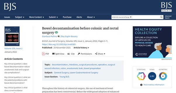 Gianluca Pellino, Eloy Espín-Basany British Journal of Surgery, Volume 109, Issue 1, January 2022, Pages 3–7 Comment: the authors conclude bowel contamination should be used routinely.